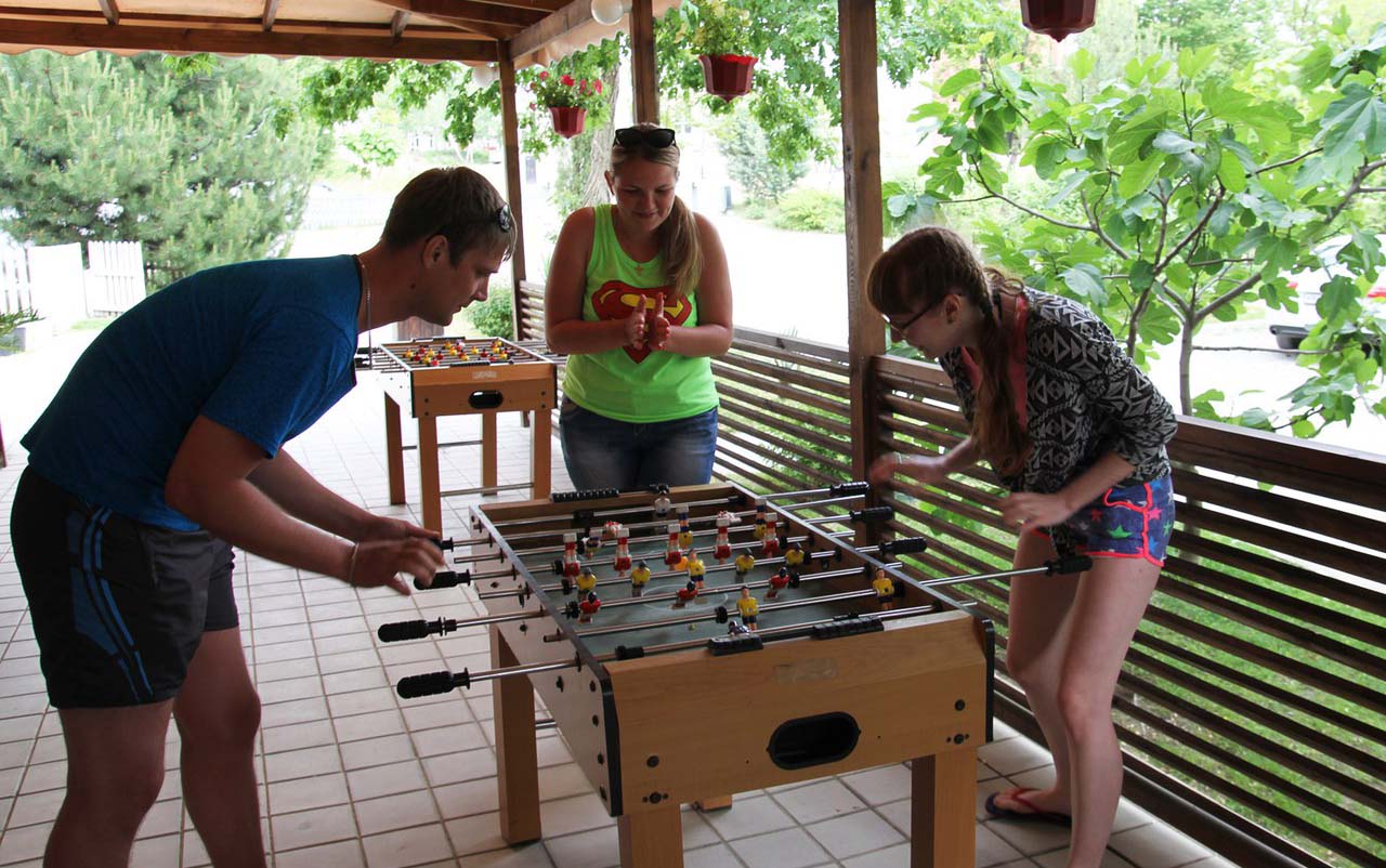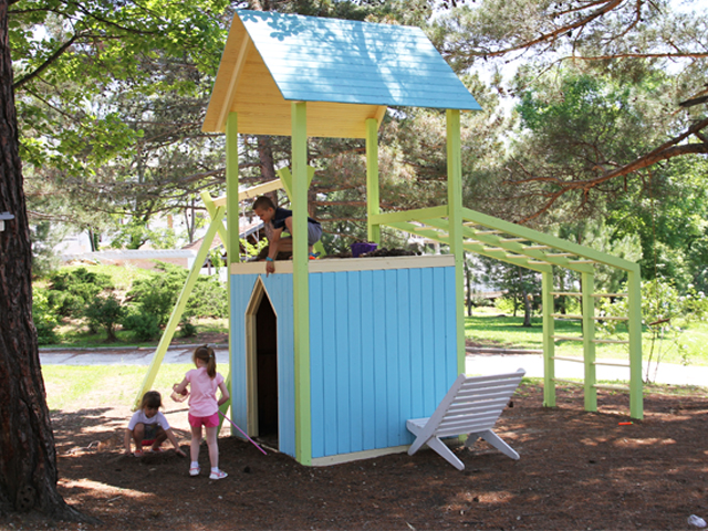 Для малышей установлен детский городок с качелями и горками. Они могут поиграть в спортивные игры – активный отдых ребенку обеспечен!