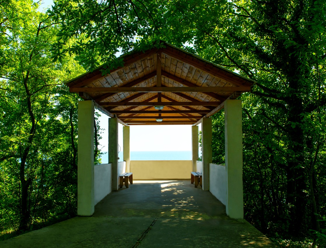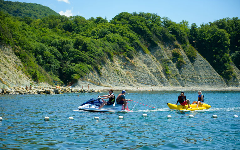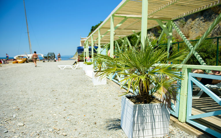 - благоустроенный галечный пляж 300 кв.м. с теневыми навесами, раздевалками;