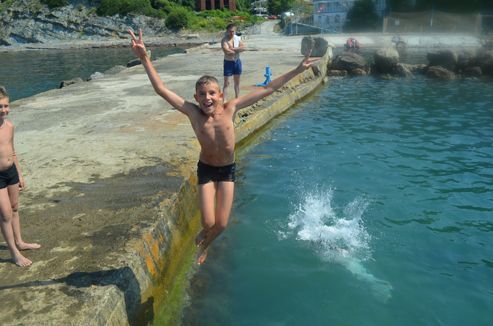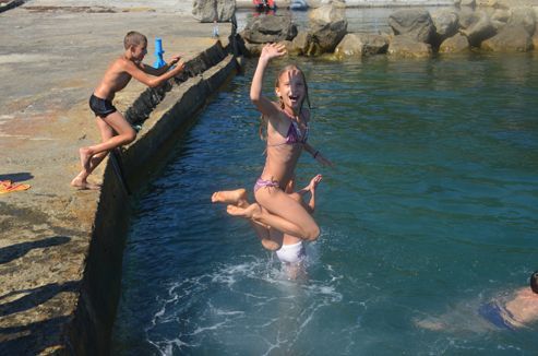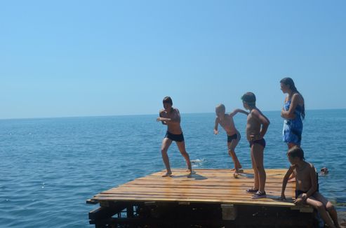 Охранники и спасатели не только постоянно следят за детьми, но и учат плавать тех, у кого это пока ещё не очень хорошо получается. Так, в первый год отдыха моя дочь стала уверенно держаться на воде и даже проплывать какое-то расстояние. Тогда ей было всего 7 лет. Теперь наша Елизавета уже отрабатывает прыжки в воду «рыбкой» и «бомбочкой». Ну а плавать мы уже давно научились ))). И самое главное, я как мама очень спокойно себя чувствую, так как уверена в безопасности своего ребёнка. Группы отдыхающих детей небольшие, и внимание хватает каждому ребёнку.