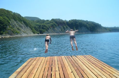 А какой заряд здоровья и энергии в таком месте получает ребёнок! Столько позитива он не всегда найдёт даже в специализированном санатории. Море, солнце, воздух — здесь всё особенное. Открытое море, чистое настолько, что можно наблюдать за многочисленными морскими обитателями: крабами и рыбками. Вода в море быстро прогревается, так как глубина незначительная. Это позволяет уверенно чувствовать себя в воде детям любого возраста. Для любителей понырять есть пирс с удобным спуском в воду. Кстати, ещё не было случая, когда ребёнок вернулся бы из лагеря, не научившись плавать.