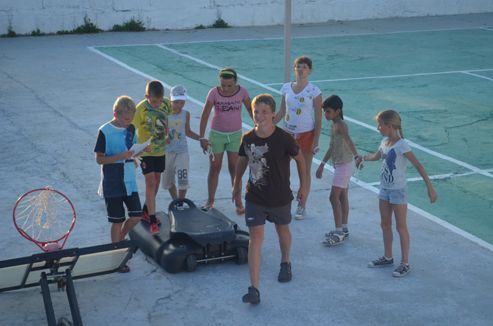 На базе можно заниматься большим теннисом, баскетболом, футболом, для этого есть все необходимое. С утра дети купаются в море и загорают. Вечером детей ждут развлечения такие как: кино и дискотека.